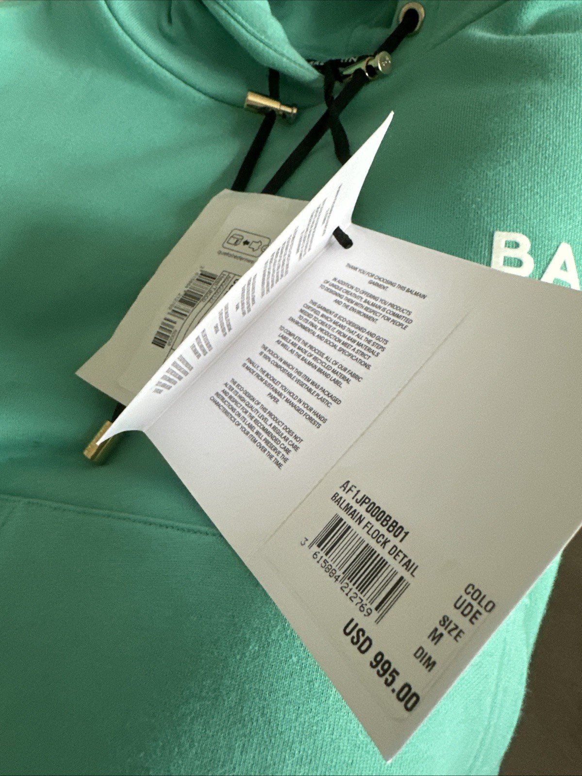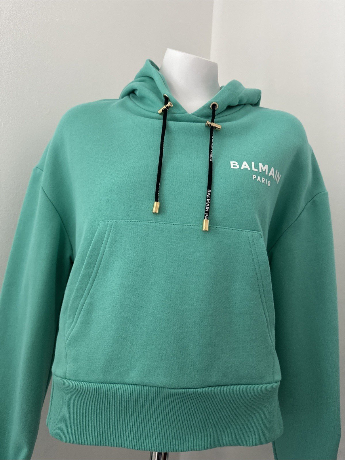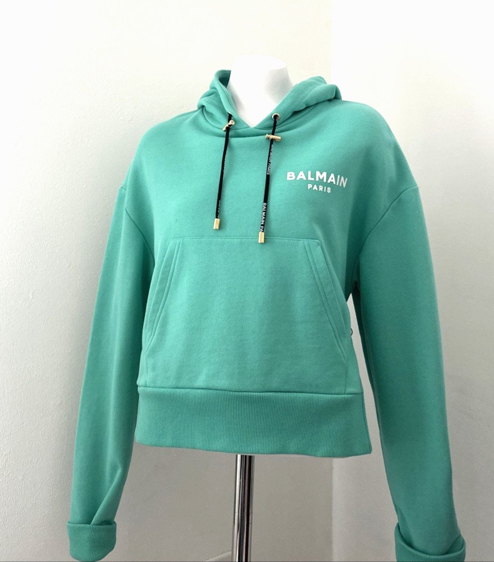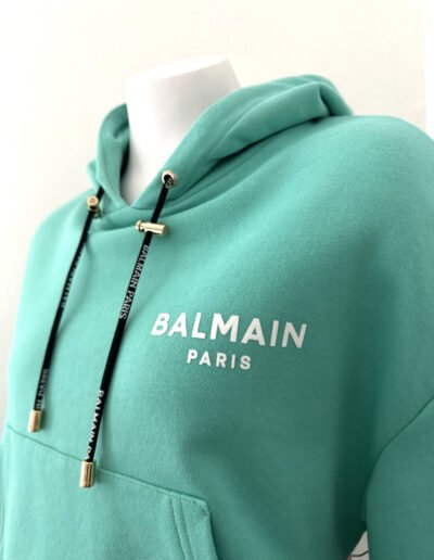 Be the first to review “BALMAIN Flocked Logo Women’s Hoodie | Sea Green / White | Size M”