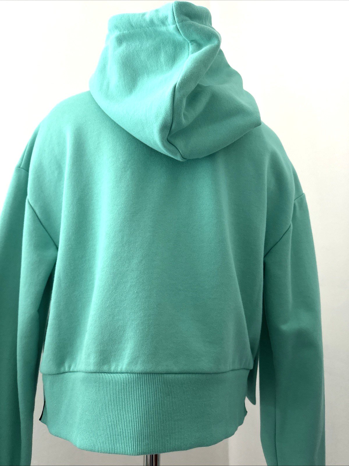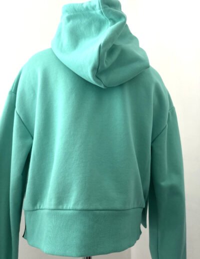 Crafted from soft, high-quality cotton, the hoodie offers a relaxed yet tailored silhouette that drapes effortlessly. The unique sea green palette provides a vibrant pop of color, making it the perfect statement piece for a polished, off-duty look.