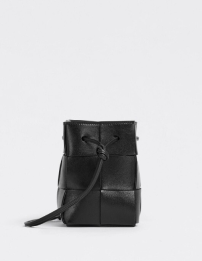 Bottega Veneta Leather Cassette Bucket Lightweight Bag | Black