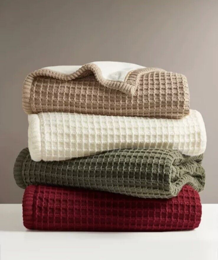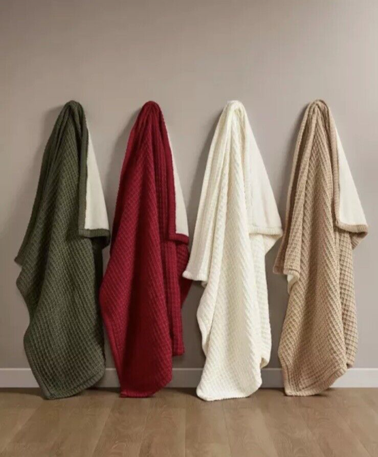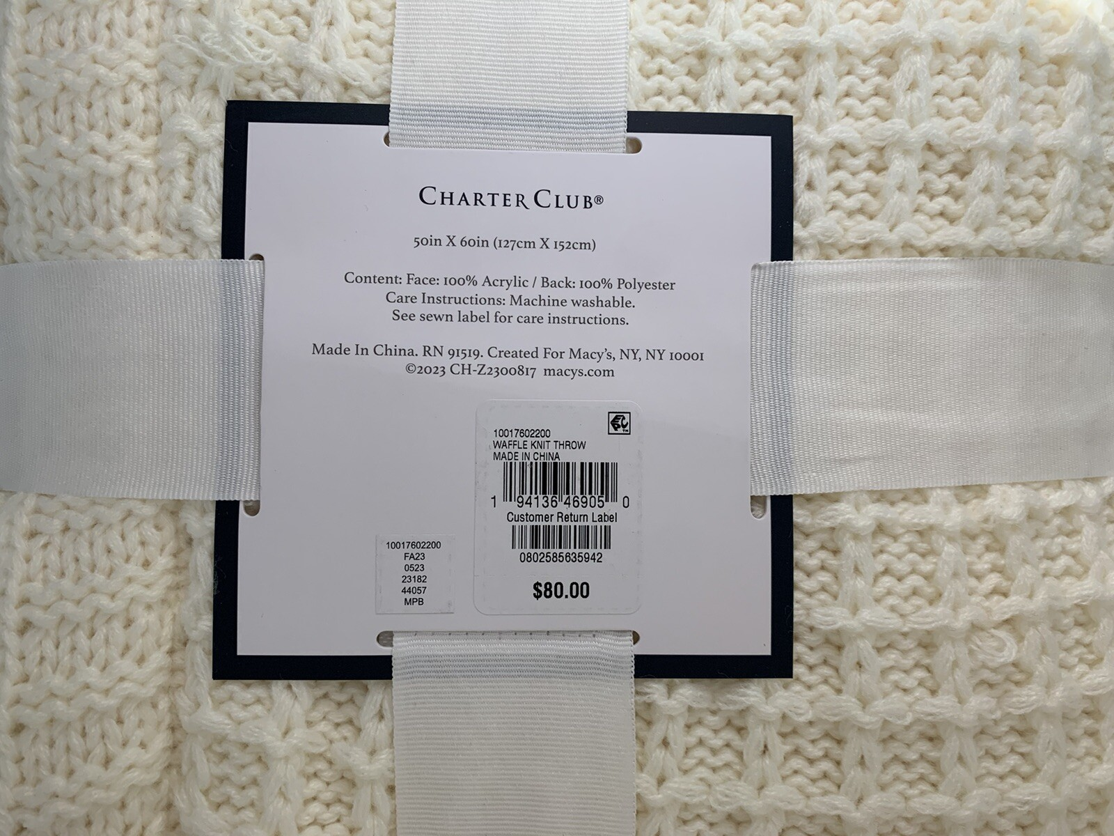 Indulge in luxurious comfort with this Charter Club Waffle Knit Faux Fur Throw Blanket. The creamy ivory color adds a touch of sophistication to any bedroom. Made of high-quality polyester and sherpa materials, this throw blanket is perfect for those chilly evenings. Measuring 50\” x 60\”, it’s the ideal size to snuggle up under while watching TV or reading a book. The reversible feature gives you the option to switch up the look of your room whenever you desire. This throw blanket is a must-have addition to any home decor.