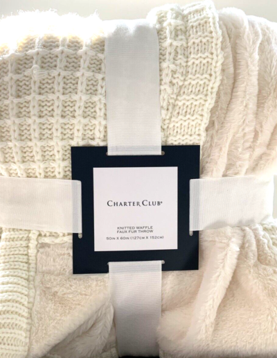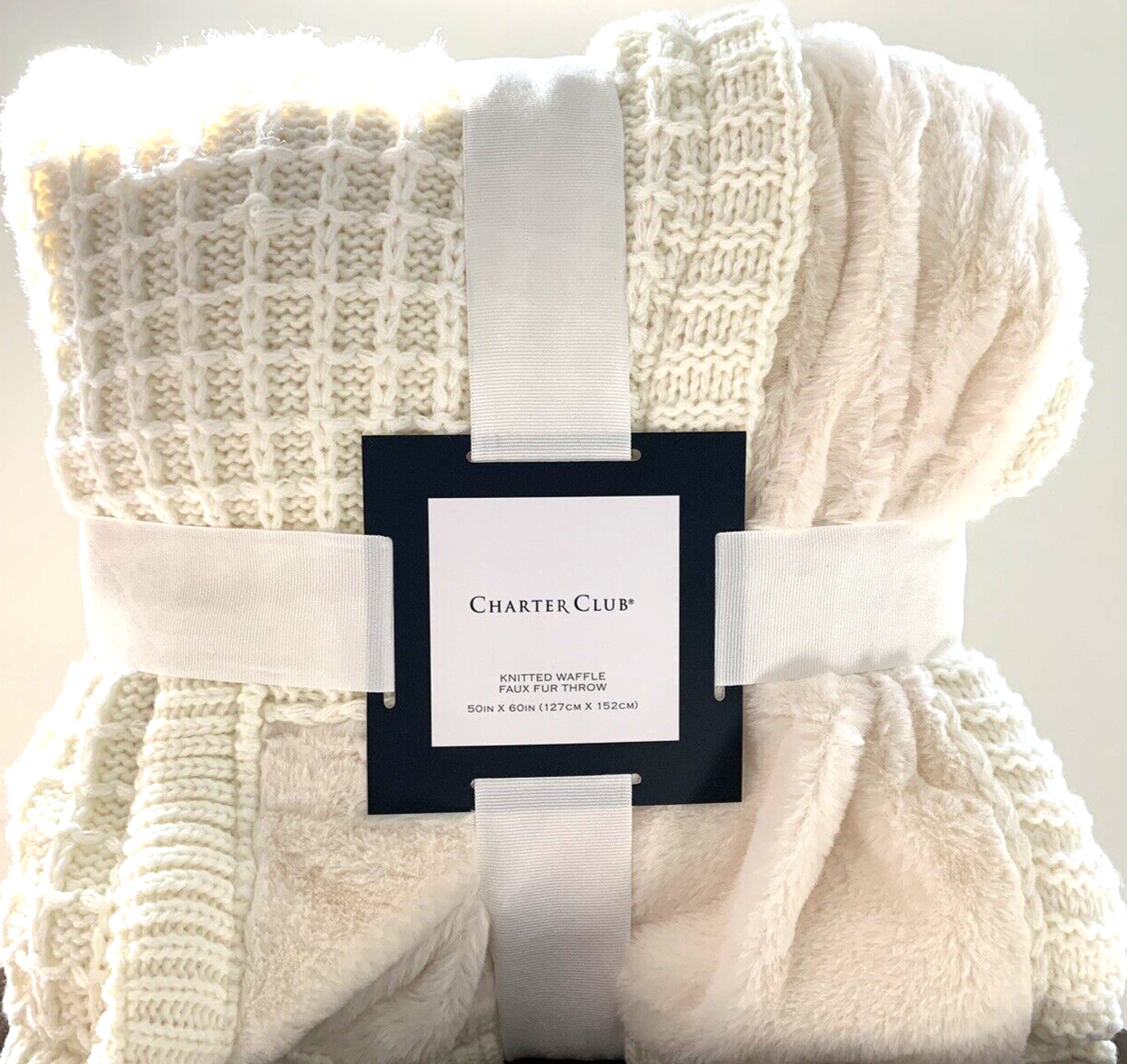 Charter Club Waffle Knit Faux Fur Throw Blanket in Cream/Ivory 50″ x 60″ $80