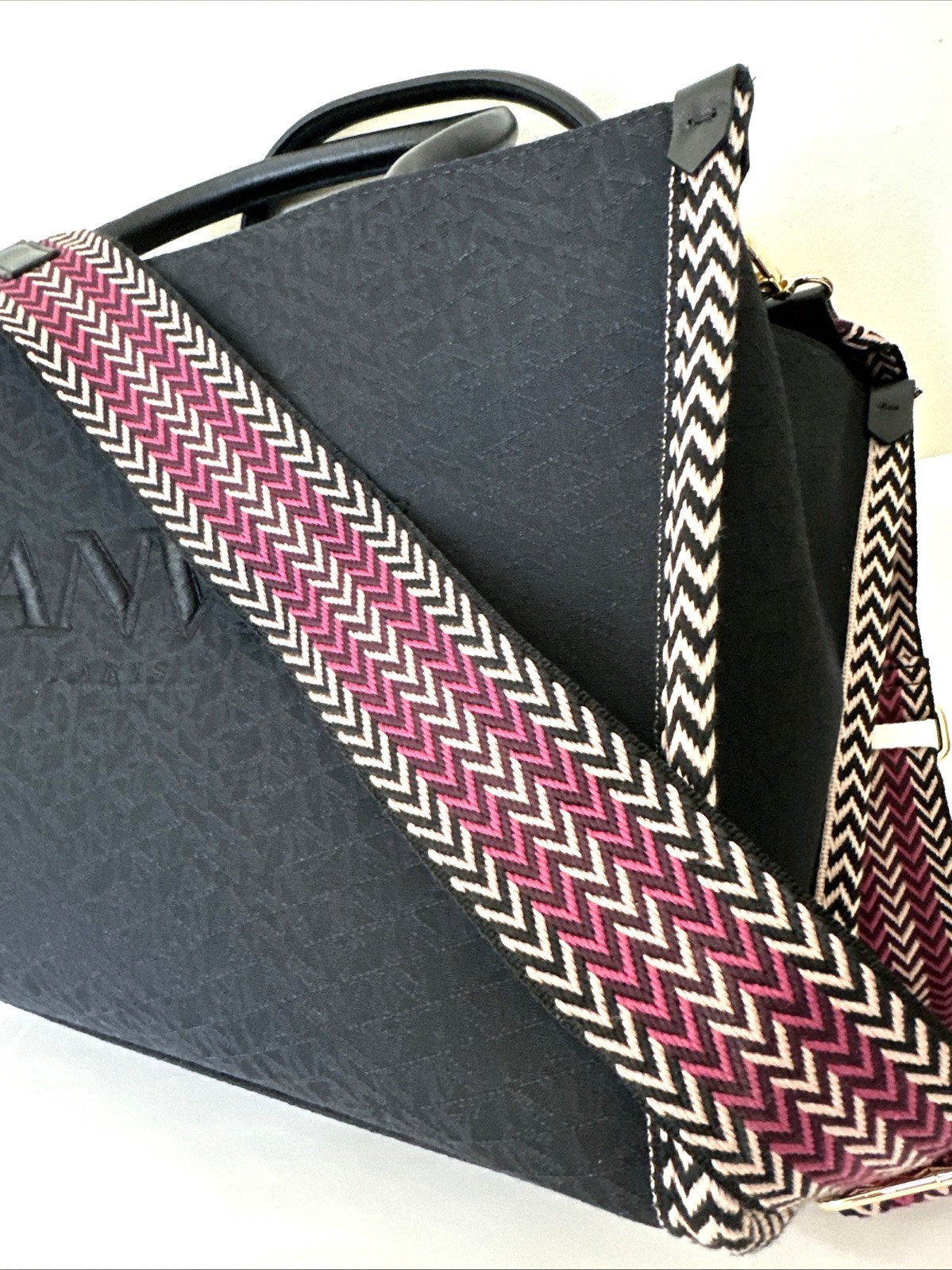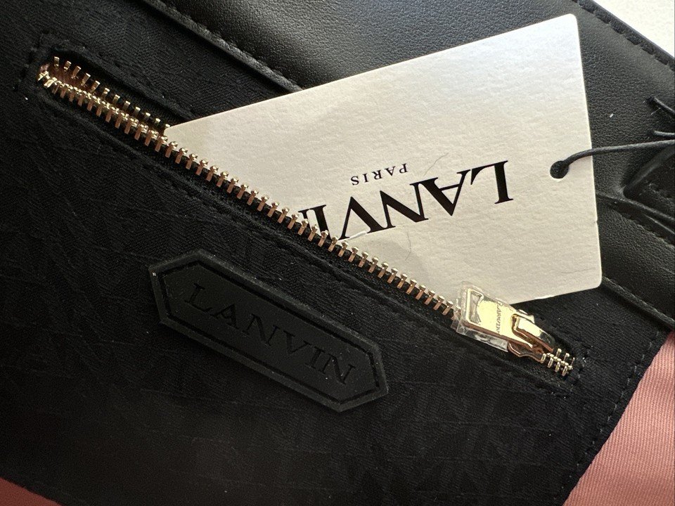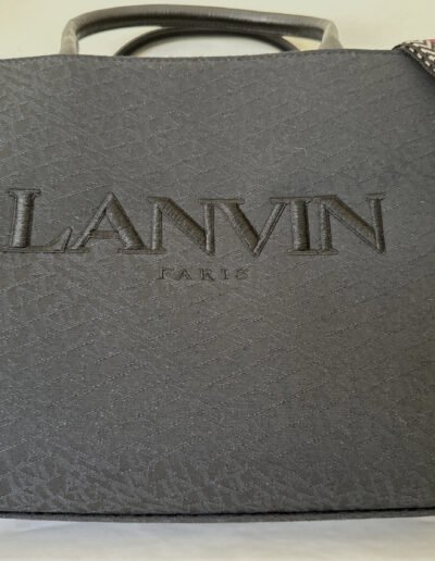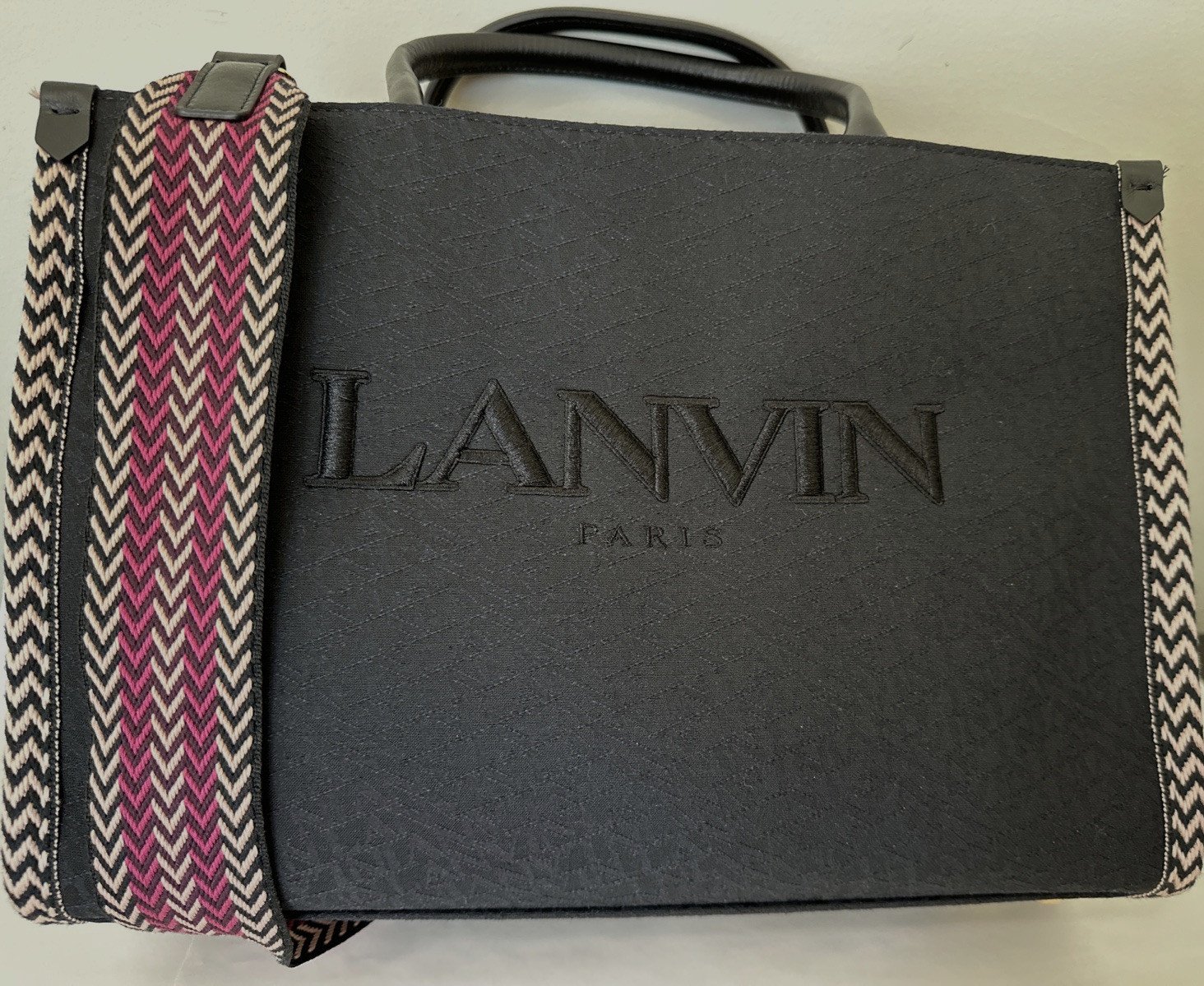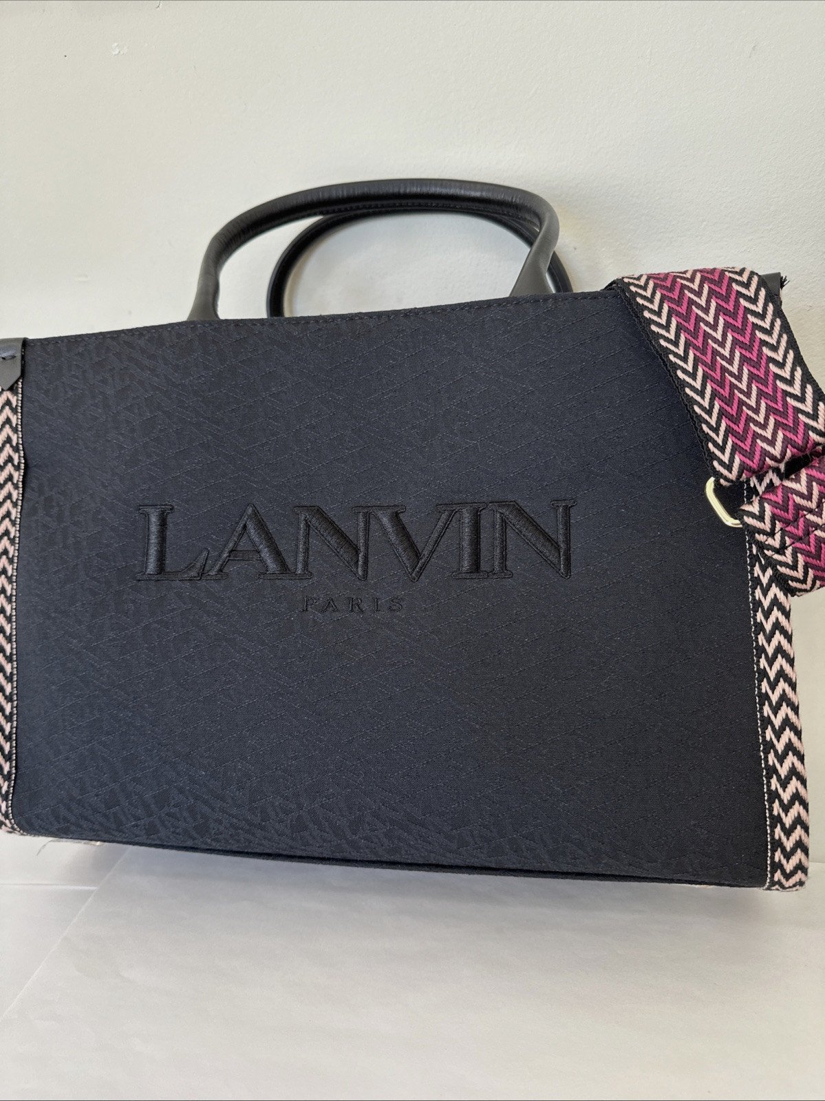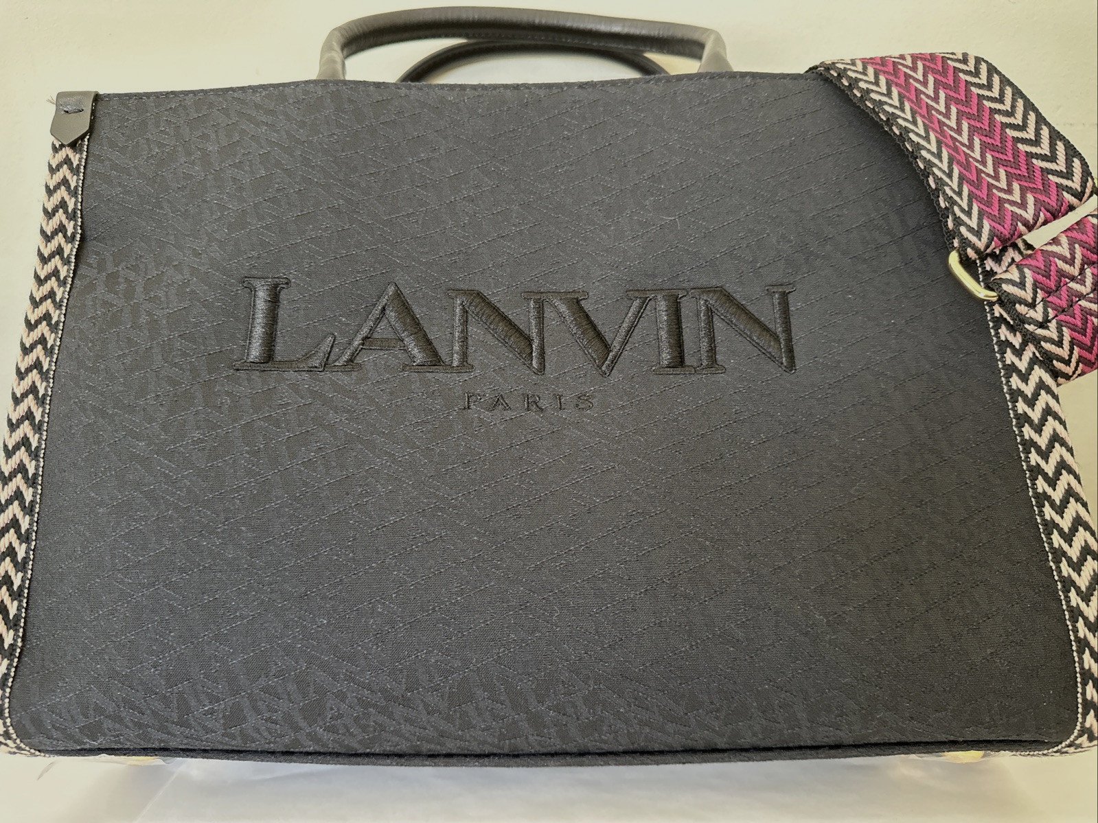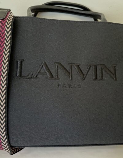 LANVIN Black Canvas and Leather Handles Jacquard Strap Medium In & Out Tote