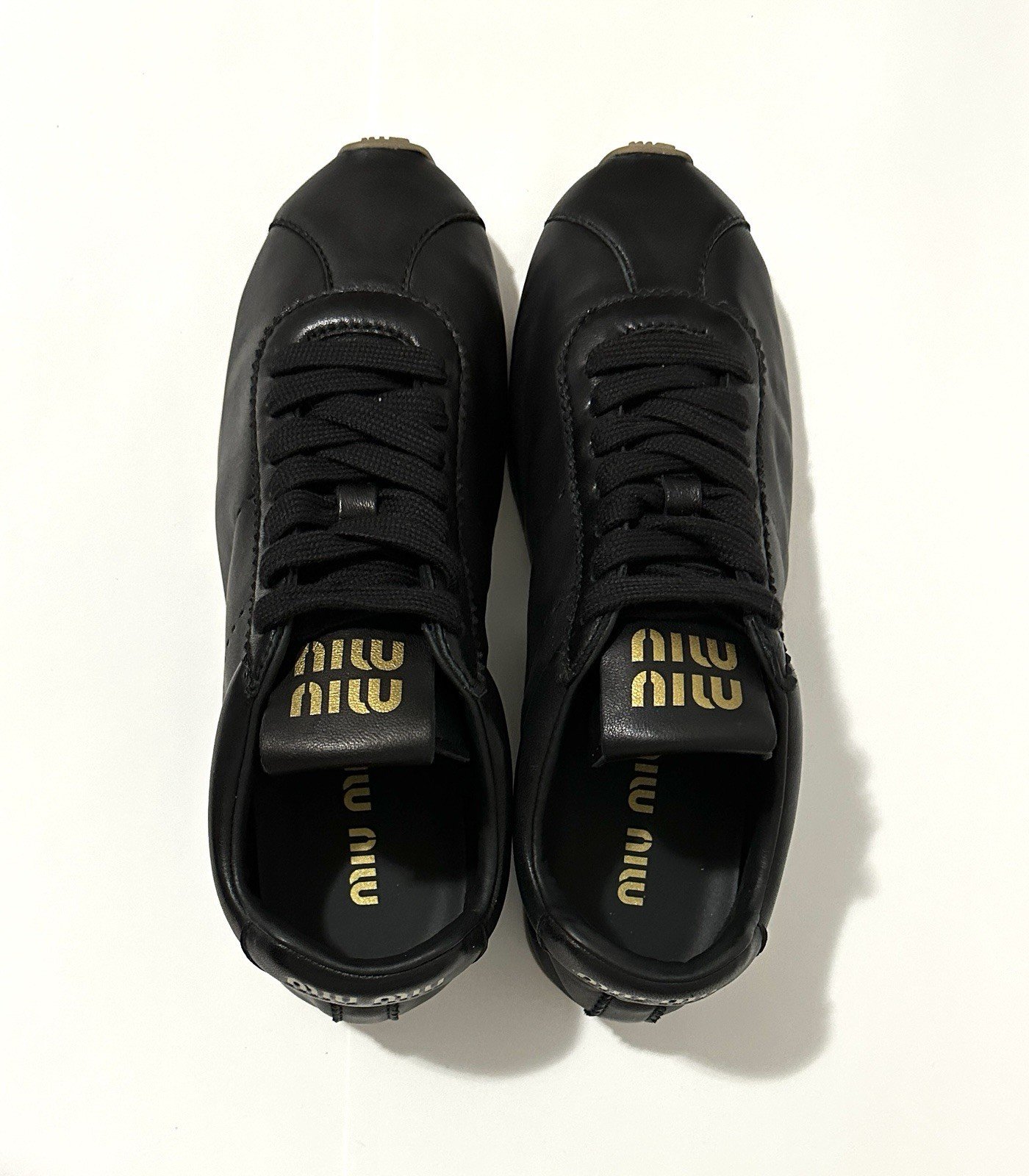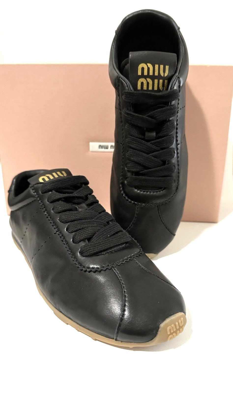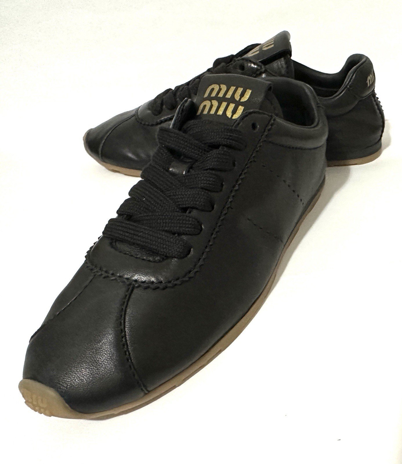 Miu Miu Plume Nappa Leather Sneakers | Black | US 7.5