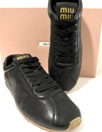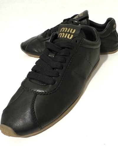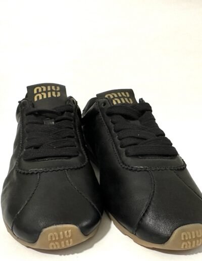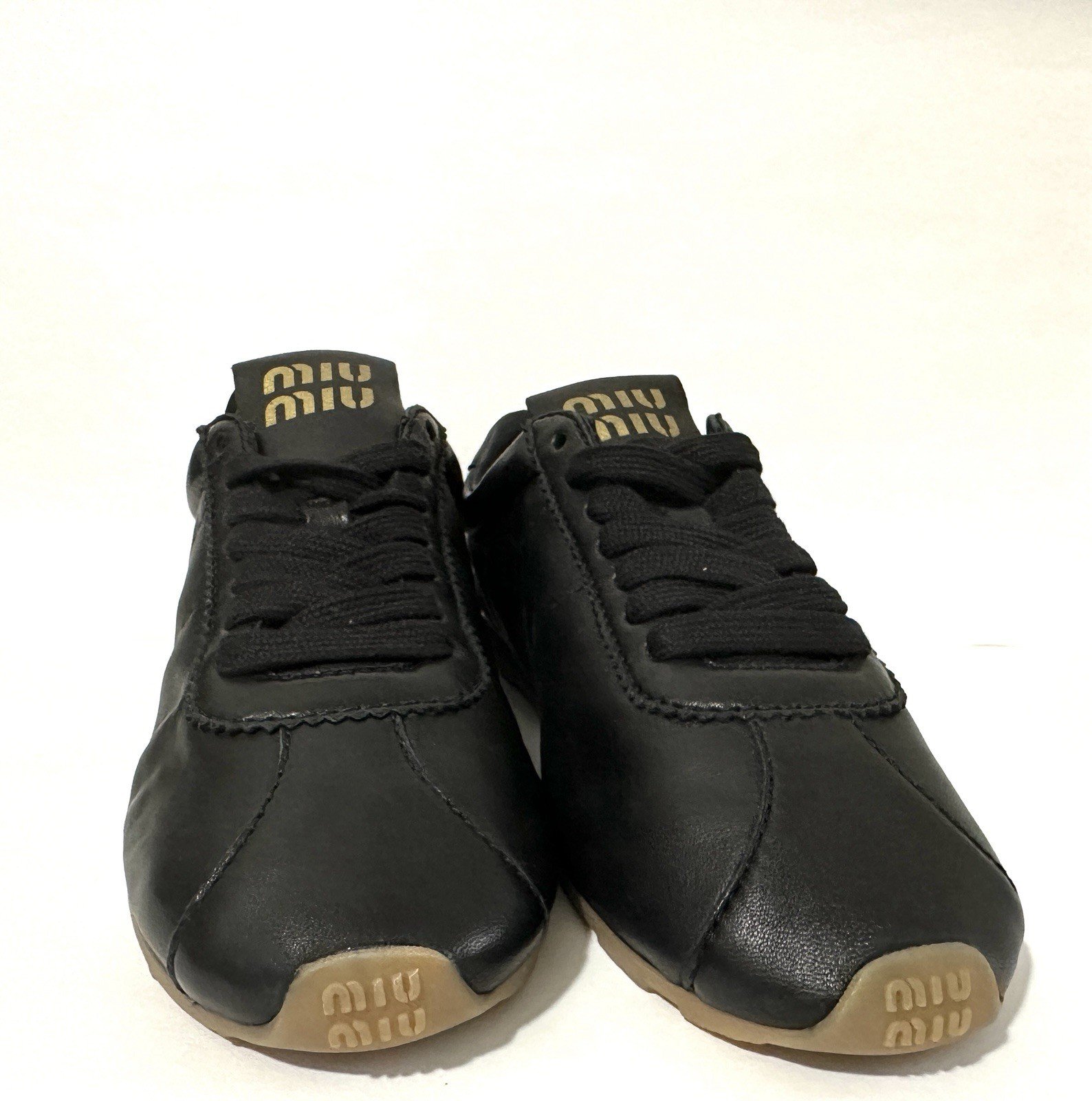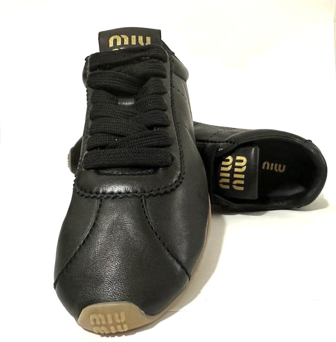 Miu Miu Plume Nappa Leather Sneakers | Black | US 7.5