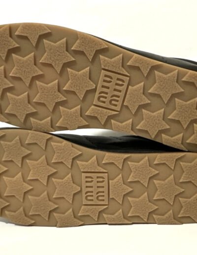 Elevate your streetwear game with the Miu Miu Plume Sneakers in sleek black nappa leather. Chunky yet refined, their sculpted silhouette and signature detailing bring bold, modern energy to every step. Cushioned for all-day comfort and finished with subtle logo accents, these sneakers are the ultimate fusion of luxury and street-ready style—perfect for turning casual looks into statement moments.